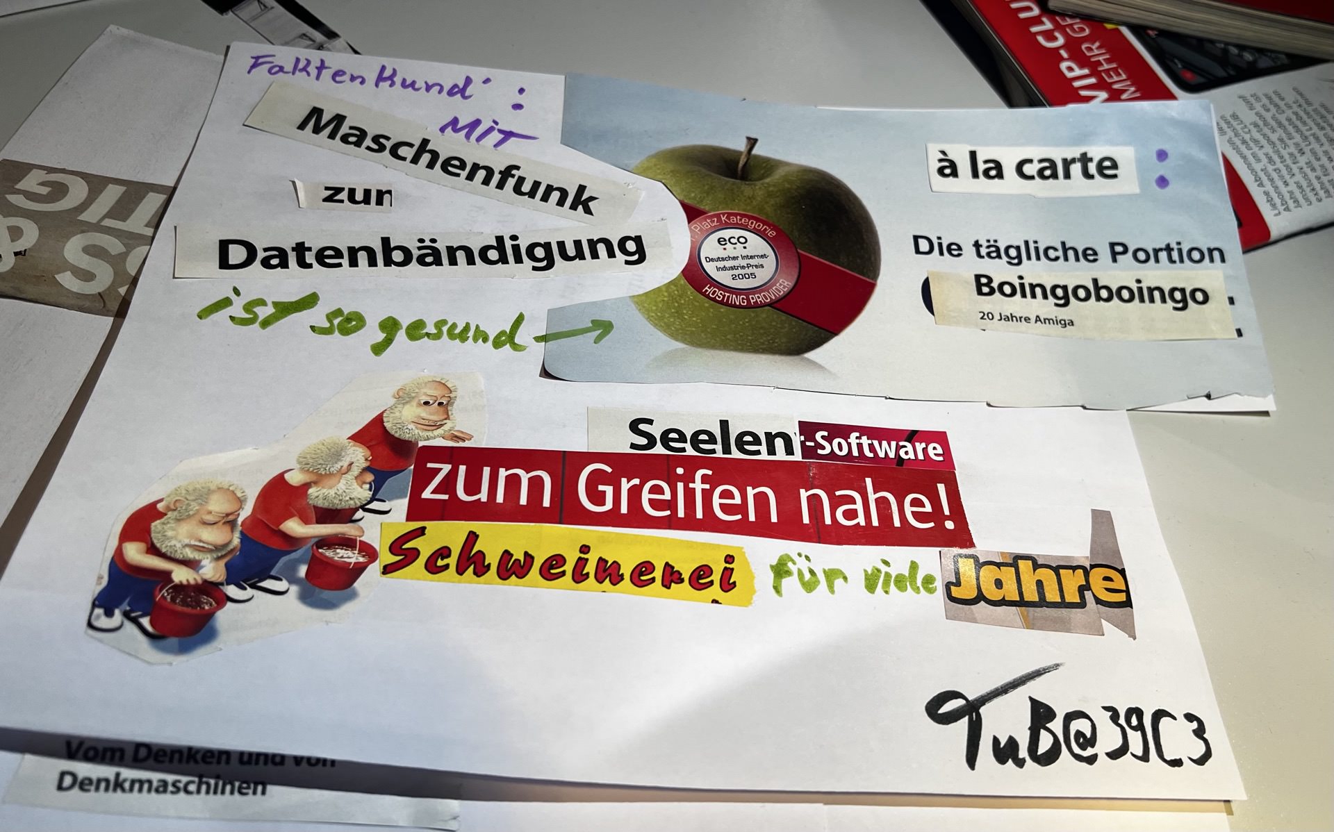 Auf dem 39. Chaos Communication Congress (39c3) 2025 habe ich mit Scrapergeist die gute alte Form des Schnipselgedichts auf den größten Hackerkongress Europas gebracht.